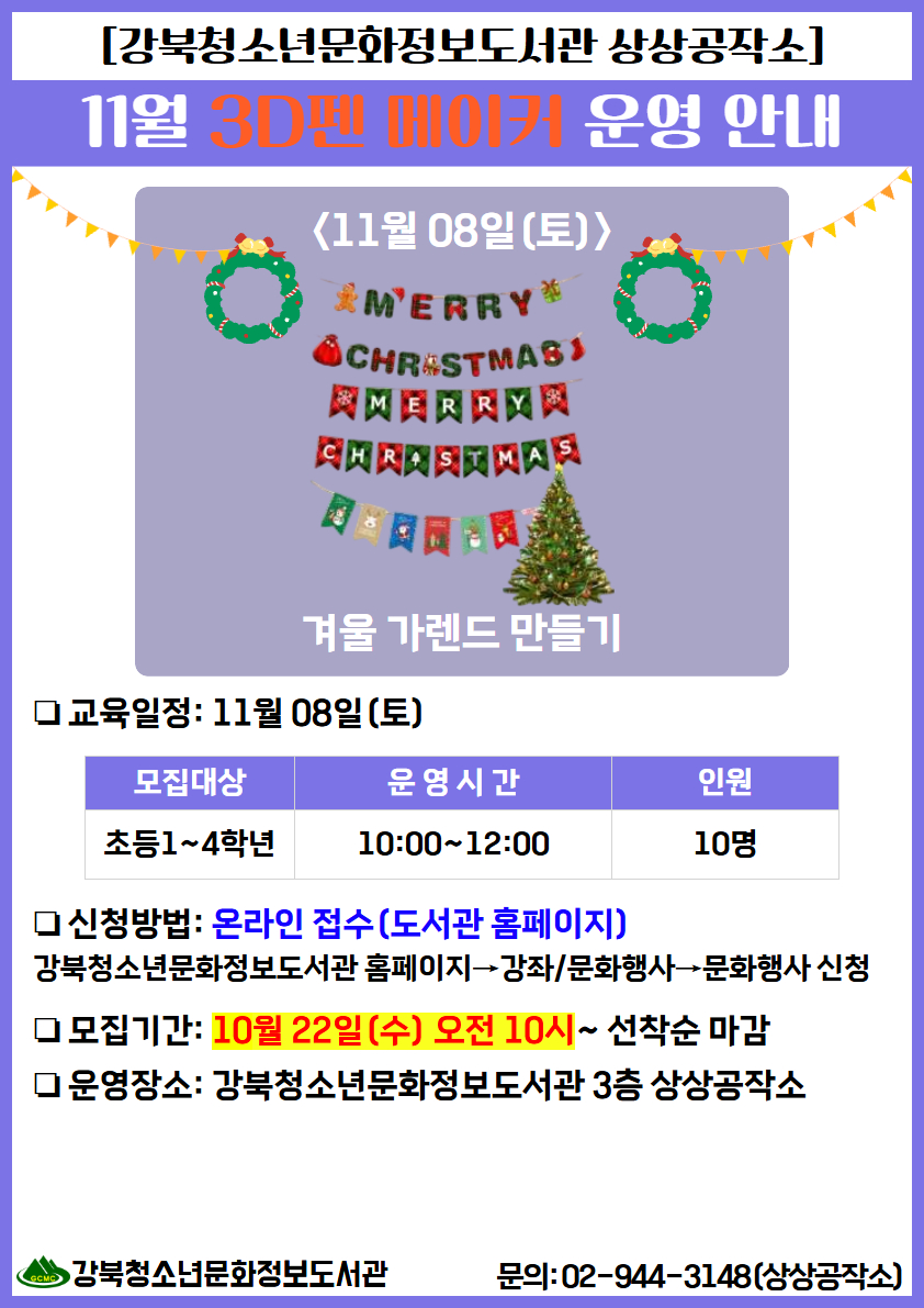 [청소년] 상상공작소 11월 : <3D펜 메이커> 프로그램 안내