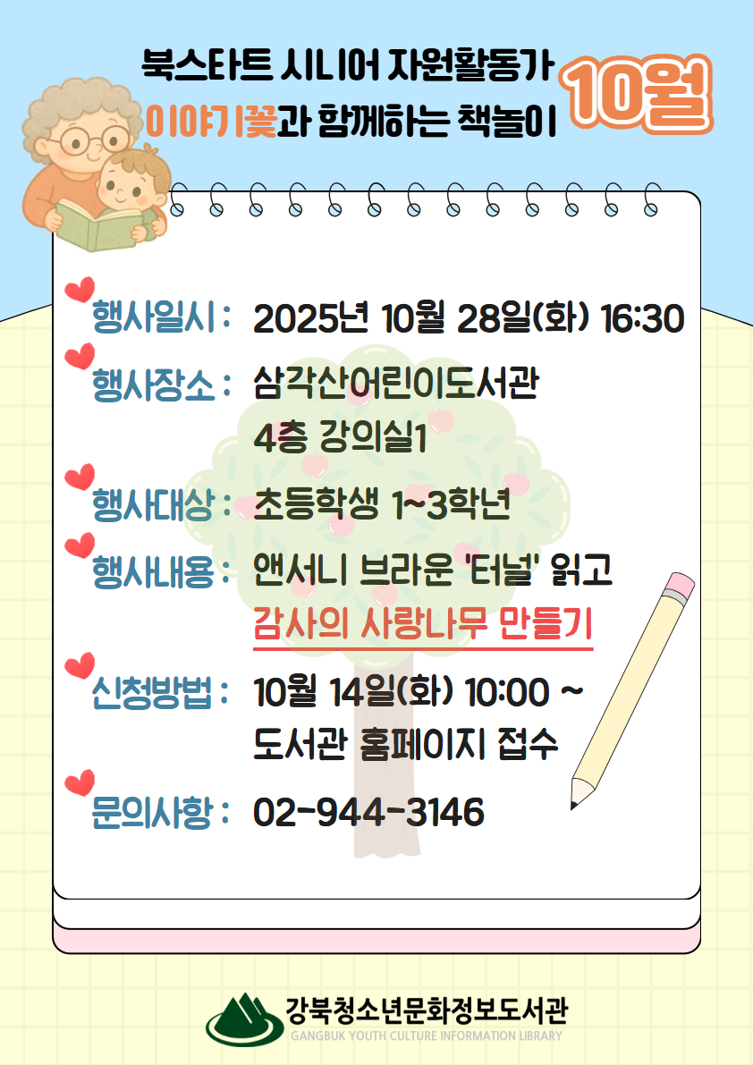 [북스타트] 이야기꽃 삼각산 10월: 감사합니다! OO님! 2025-10-02