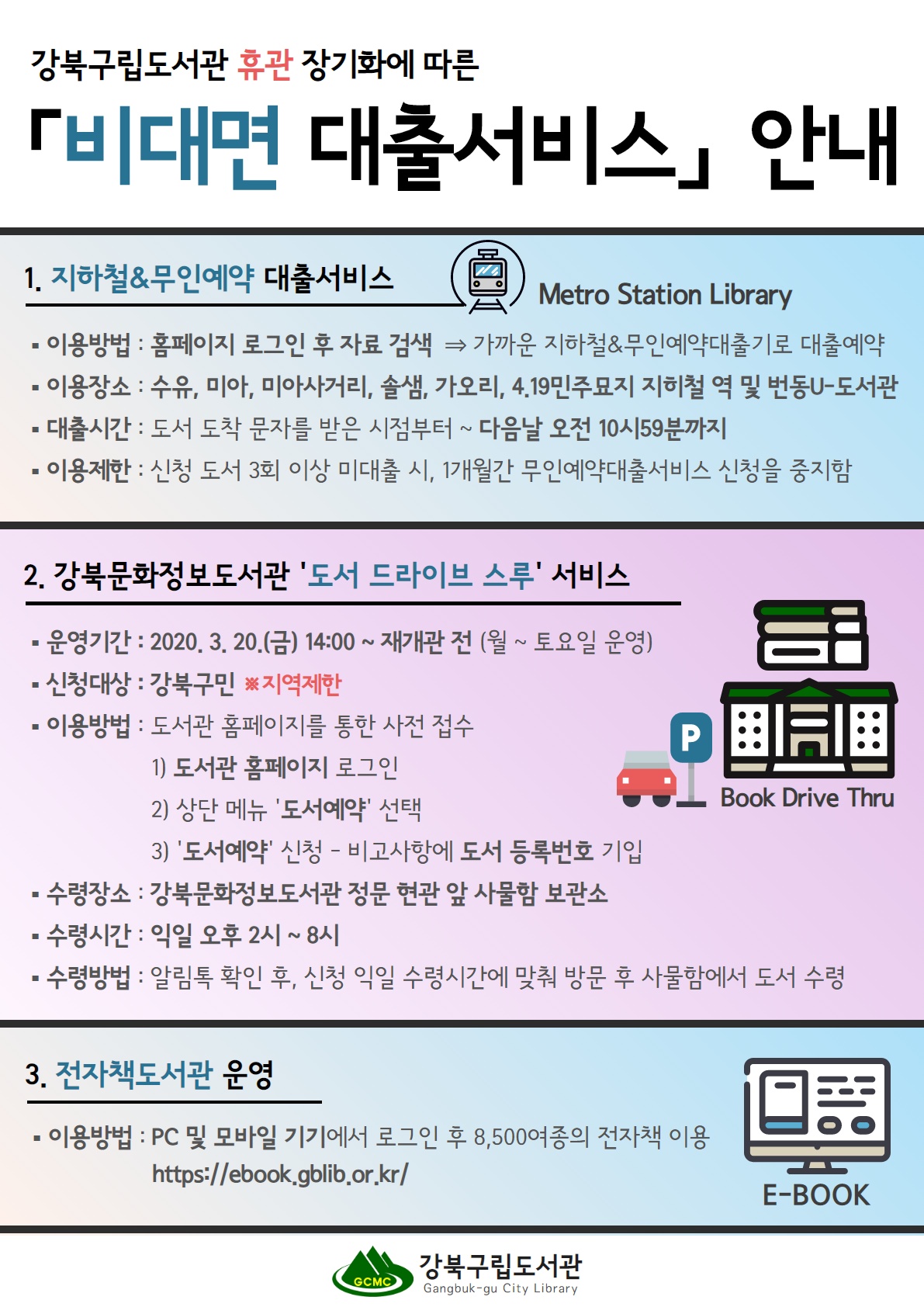 강북구립도서관 「비대면 대출서비스」 안내