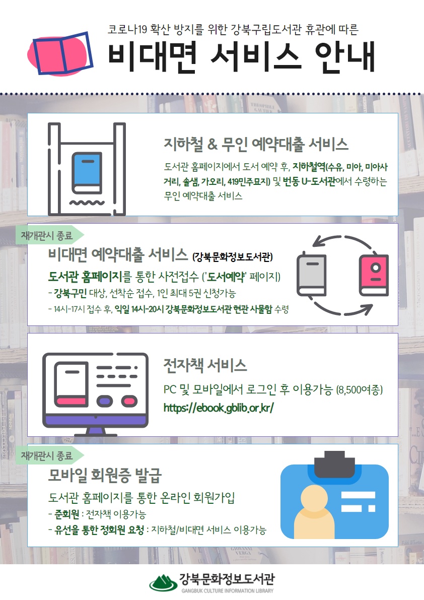 강북구립도서관 휴관에 따른 비대면 서비스 안내