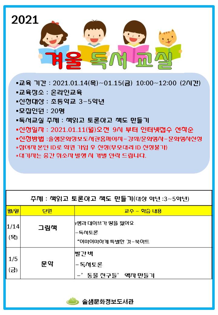 [솔샘] 2021 겨울독서교실 실시