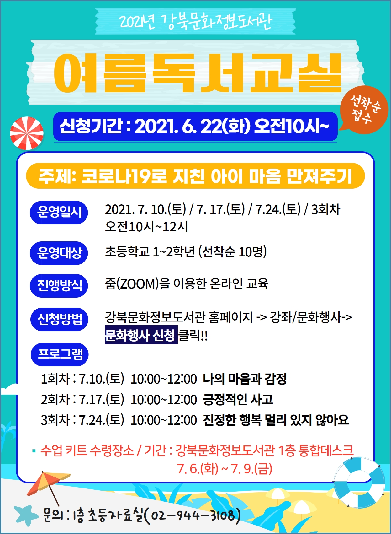※ 2021년 강북문화정보도서관 여름독서교실 참여자 모집