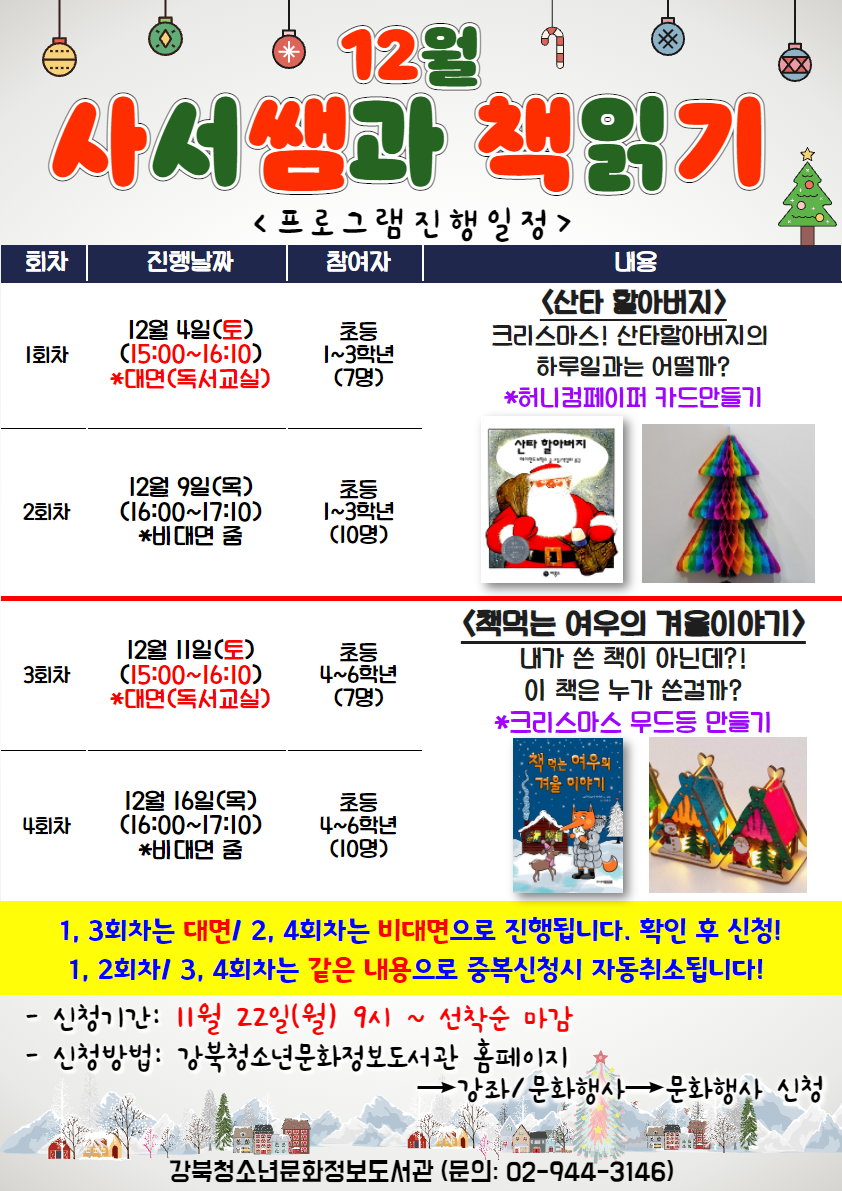 - [강북청소년]12월 사서쌤과 책읽기 참여자 모집 2021-11-20