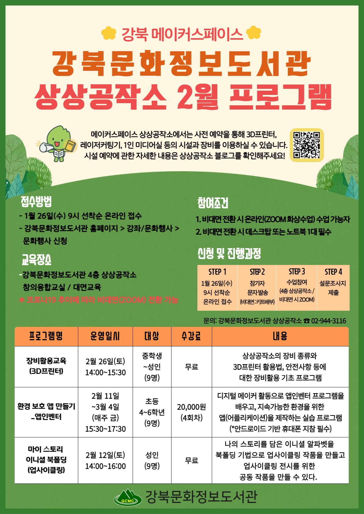 강북문화정보도서관 상상공작소 2월 프로그램 참가자 모집