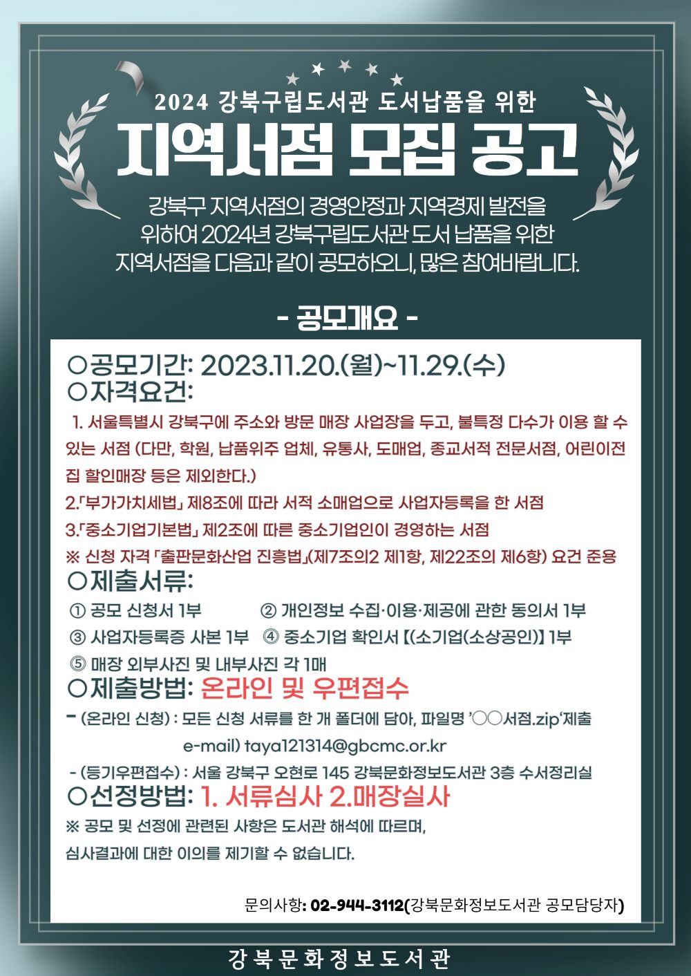 2024년 강북구립도서관 도서납품 지역서점 모집 공고