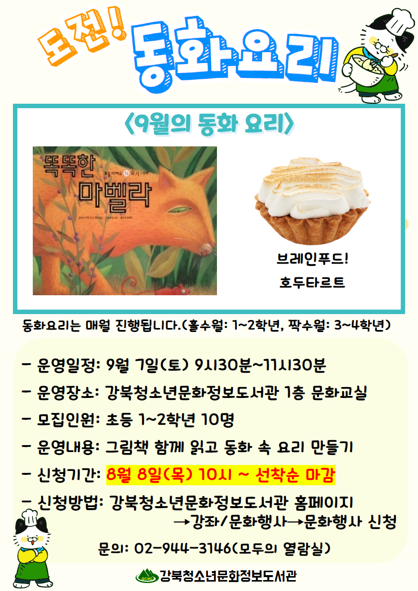 - [강북청소년] 독서융합프로그램<도전! 동화요리>-9월 2024-07-27