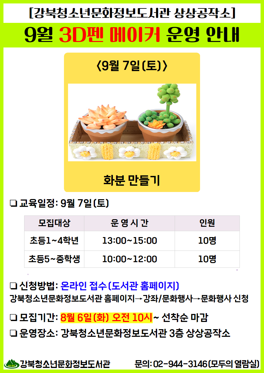 - [강북청소년]상상공작소-9월 3D펜 메이커 2024-07-27