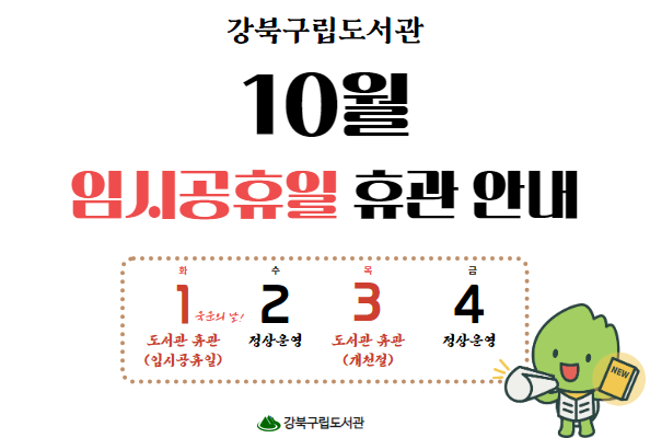 강북구립도서관 10월 임시공휴일 휴관 안내