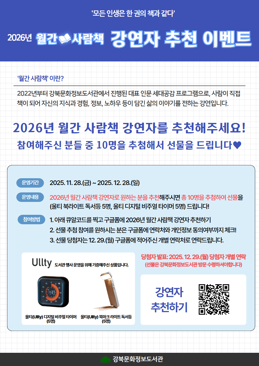 2026년 월간 사람책 강연자 추천 이벤트 안내