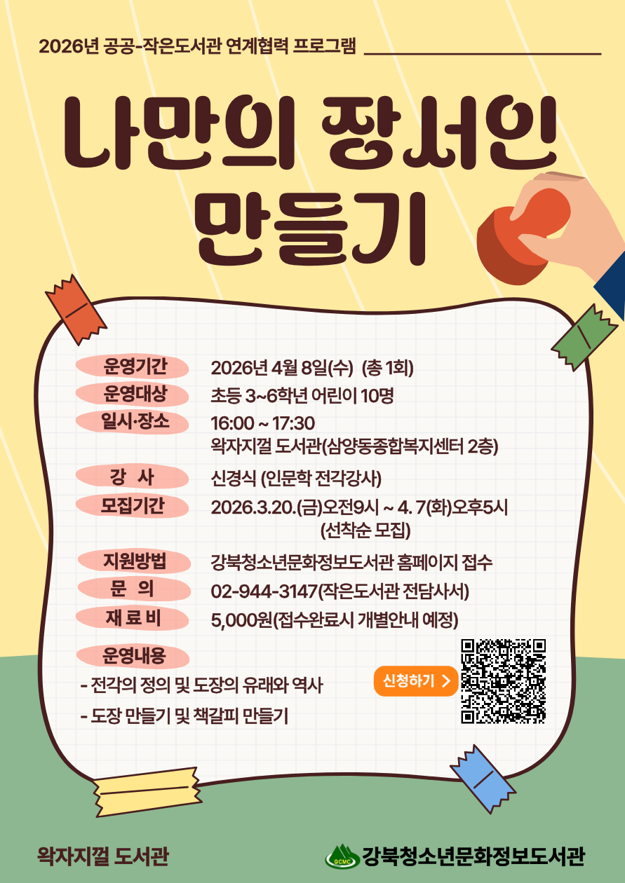 [작은도서관] 왁자지껄 도서관"나만의 장서인 만들기" 프로그램 안내