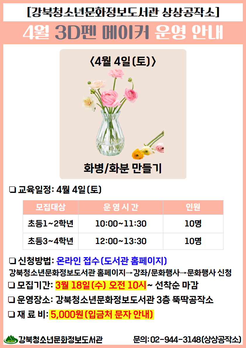[청소년] 상상공작소 04월 : <3D펜 메이커> 프로그램 안내