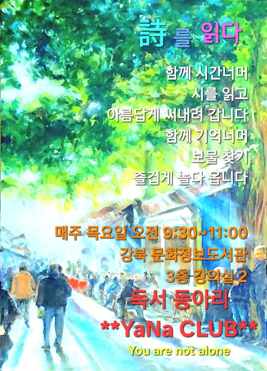 강북문화정보도서관 독서동아리 「야나(YANA)」 모집 안내