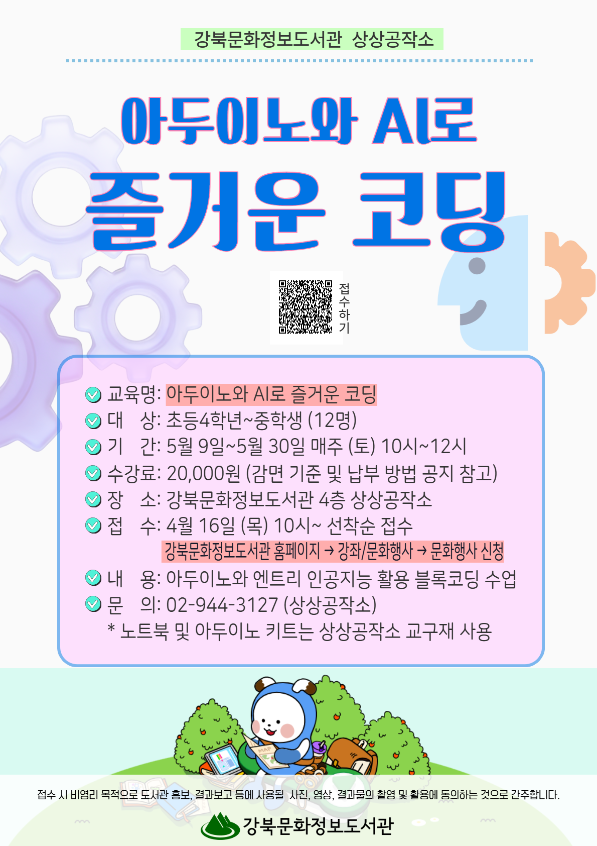[강북] 상상공작소 '아두이노와 AI로 즐거운 코딩' 프로그램 안내
