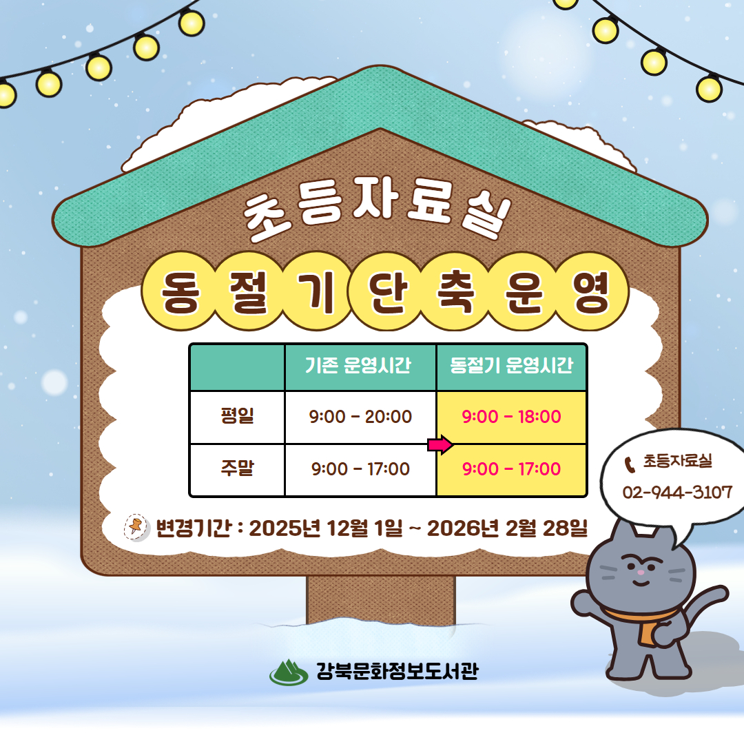 [강북] 초등자료실 동절기 단축 운영 안내