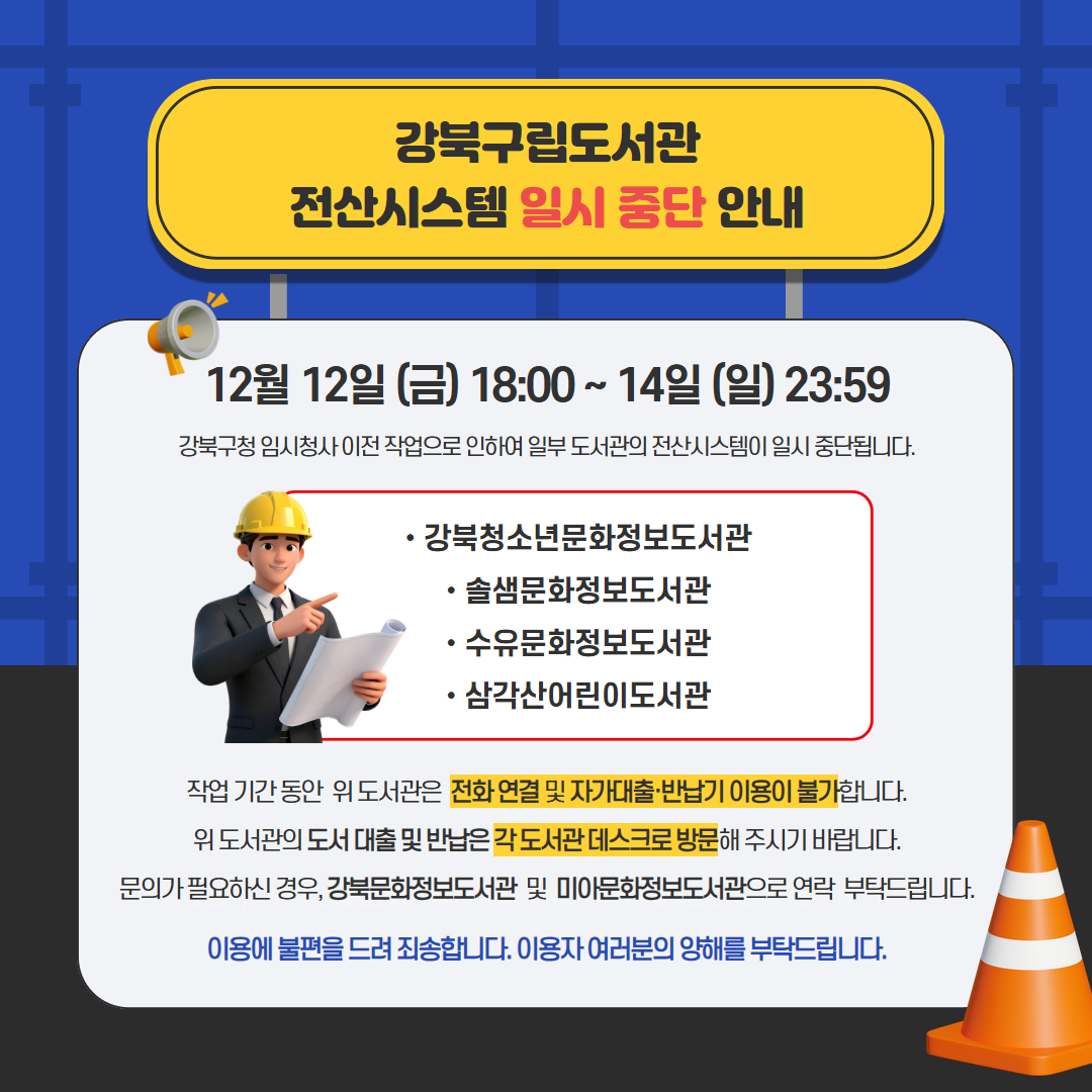 강북구립도서관 전산시스템 일시 중단 안내