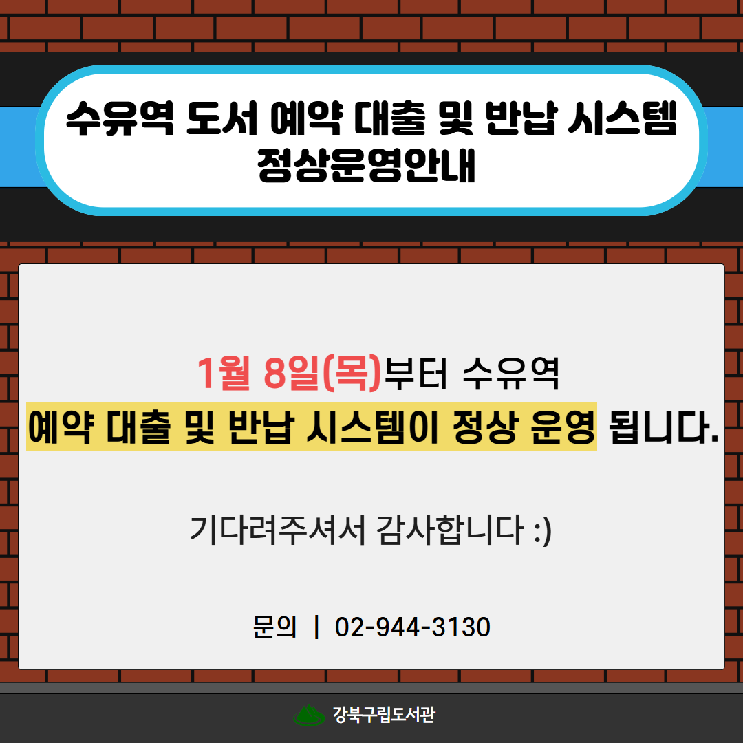 수유역 도서 예약 대출 및 반납 시스템 정상 운영 안내