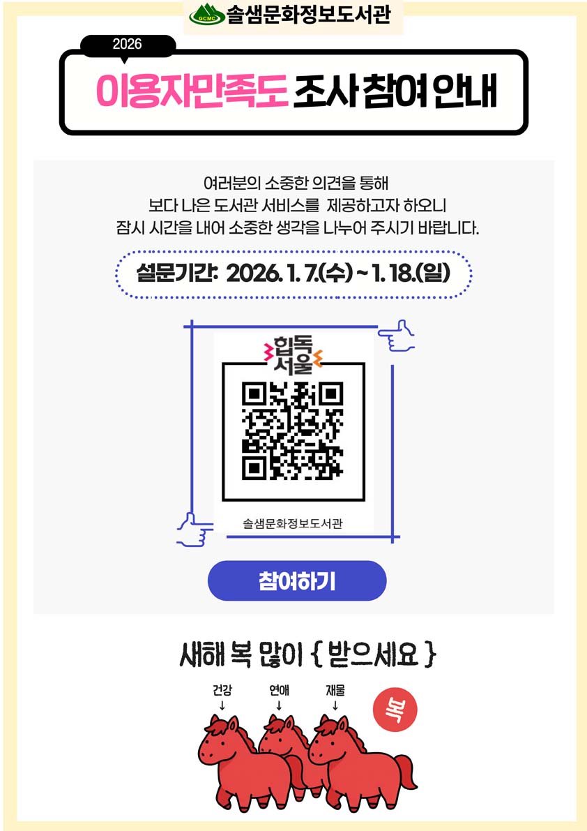 [솔샘] 솔샘문화정보도서관 이용자 만족도 조사 안내