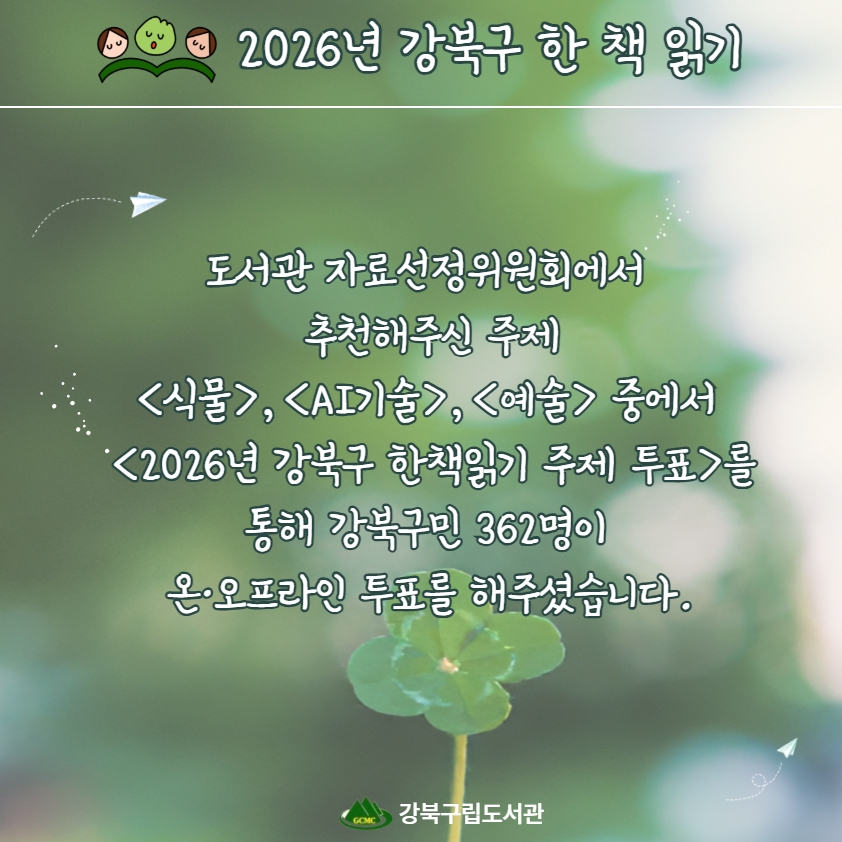 2026년 강북구 한 책 읽기 주제 선정 안내