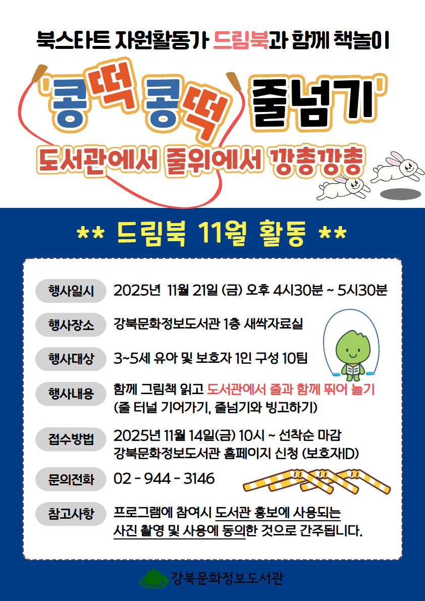 [북스타트] 드림북 - 도서관에서 줄위에서 깡총깡총 참여자 모집
