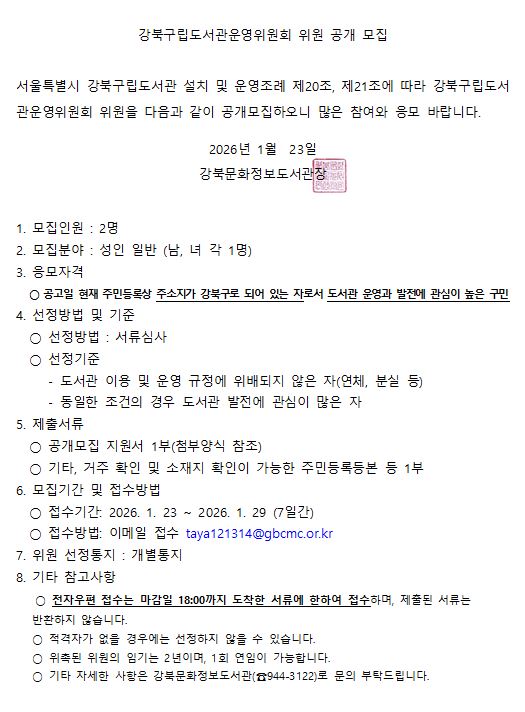 붙임2_강북구립도서관운영위원회 위원 공개모집 지원서.hwp