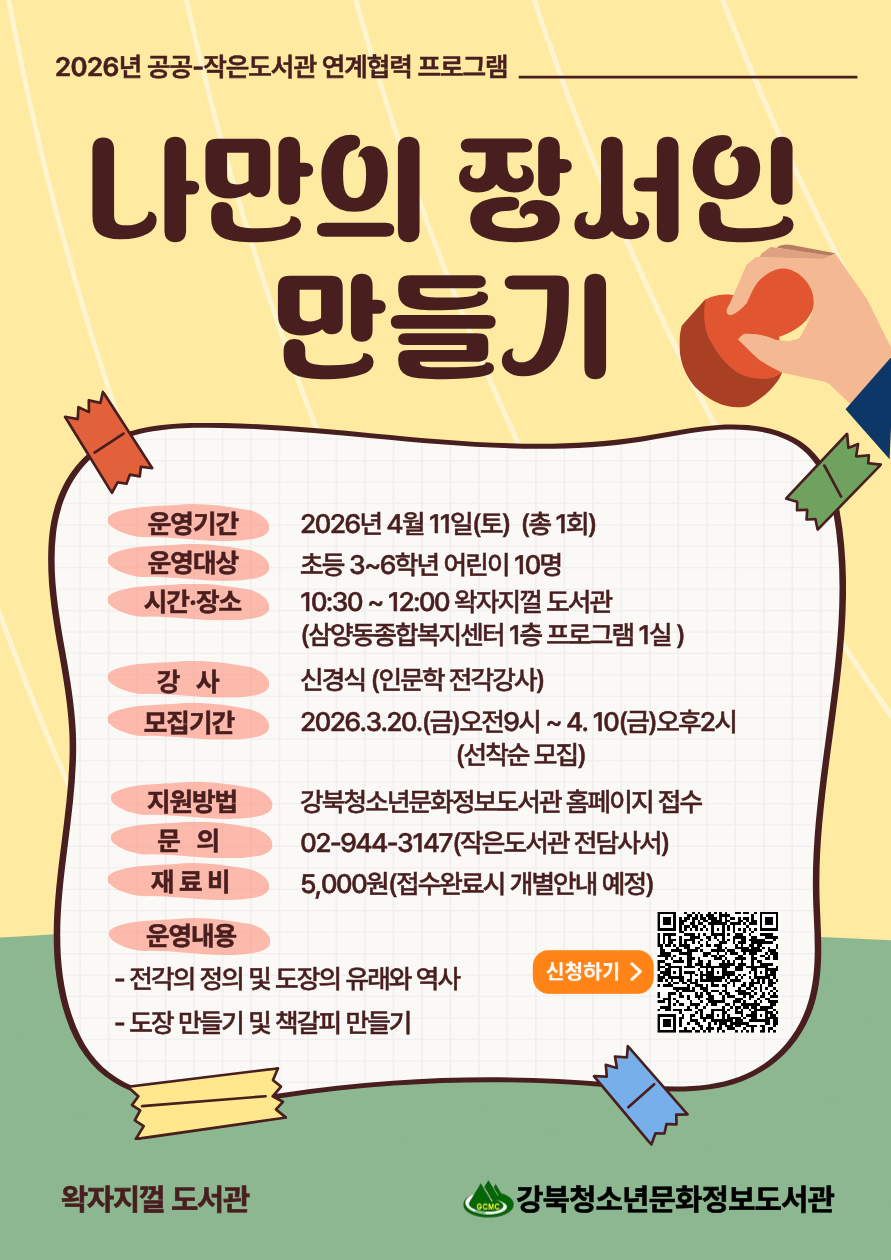 [작은도서관] 왁자지껄 도서관 "나만의 장서인 만들기" 프로그램 안내