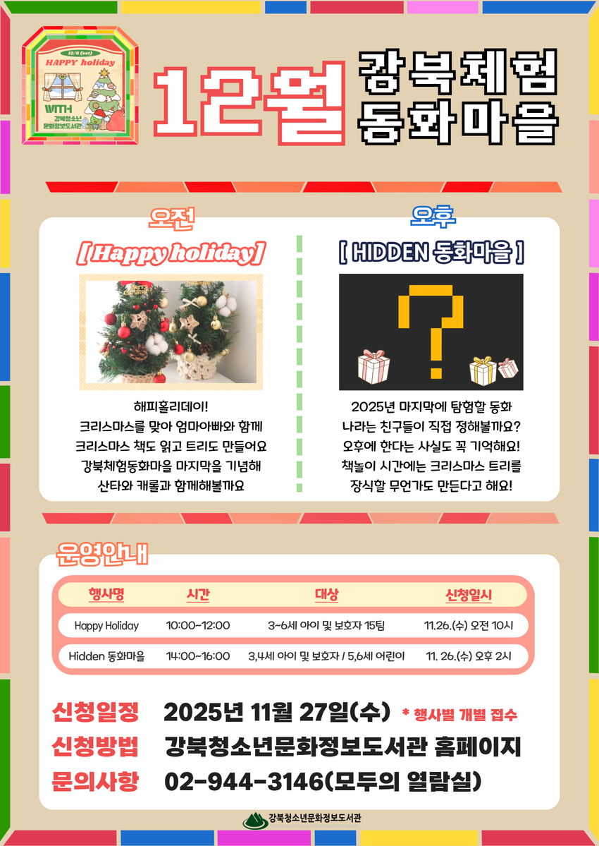 - [청소년] 해피도서관데이: Happy Holiday & 12월 HIDDEN 동화마을 접수 2025-11-26